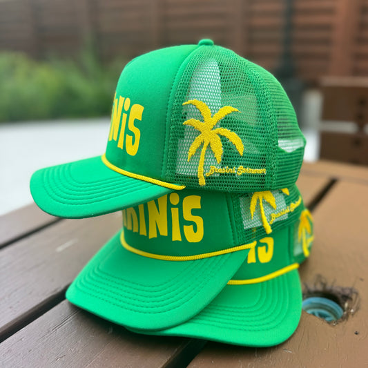 Trucker Hat ‘Bikinis’Discover summer’s must-have accessory : our ‘Bikinis’ trucker hat in green with yellow details. Perfect for beach days and casual vibes.