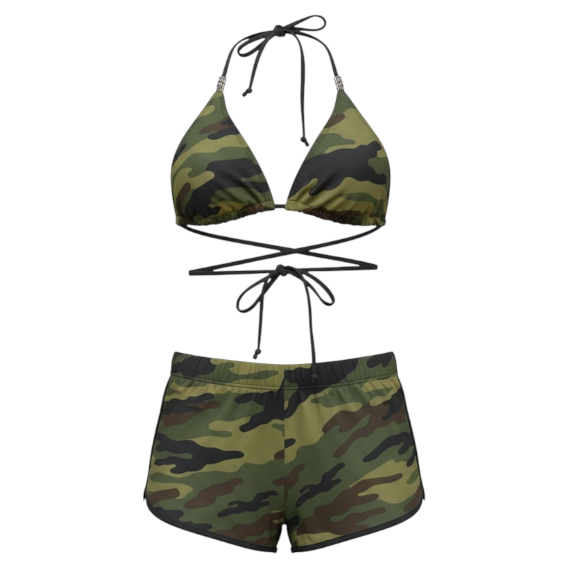 The Retro-Inspired Beach Short is a must-have cover-up designed for effortless style and comfort. Featuring a pull-on silhouette with built-in stretch, this short offers an easy, flattering fit for all-day wear. Its vintage-inspired design pairs perfectly with the Soninha Bikini Top and Copa bikini bottom in camouflage, making it ideal for beach days, poolside lounging, or casual resort looks. Lightweight and versatile, it’s the perfect finishing piece to complete your swim ensemble. Made in NYC