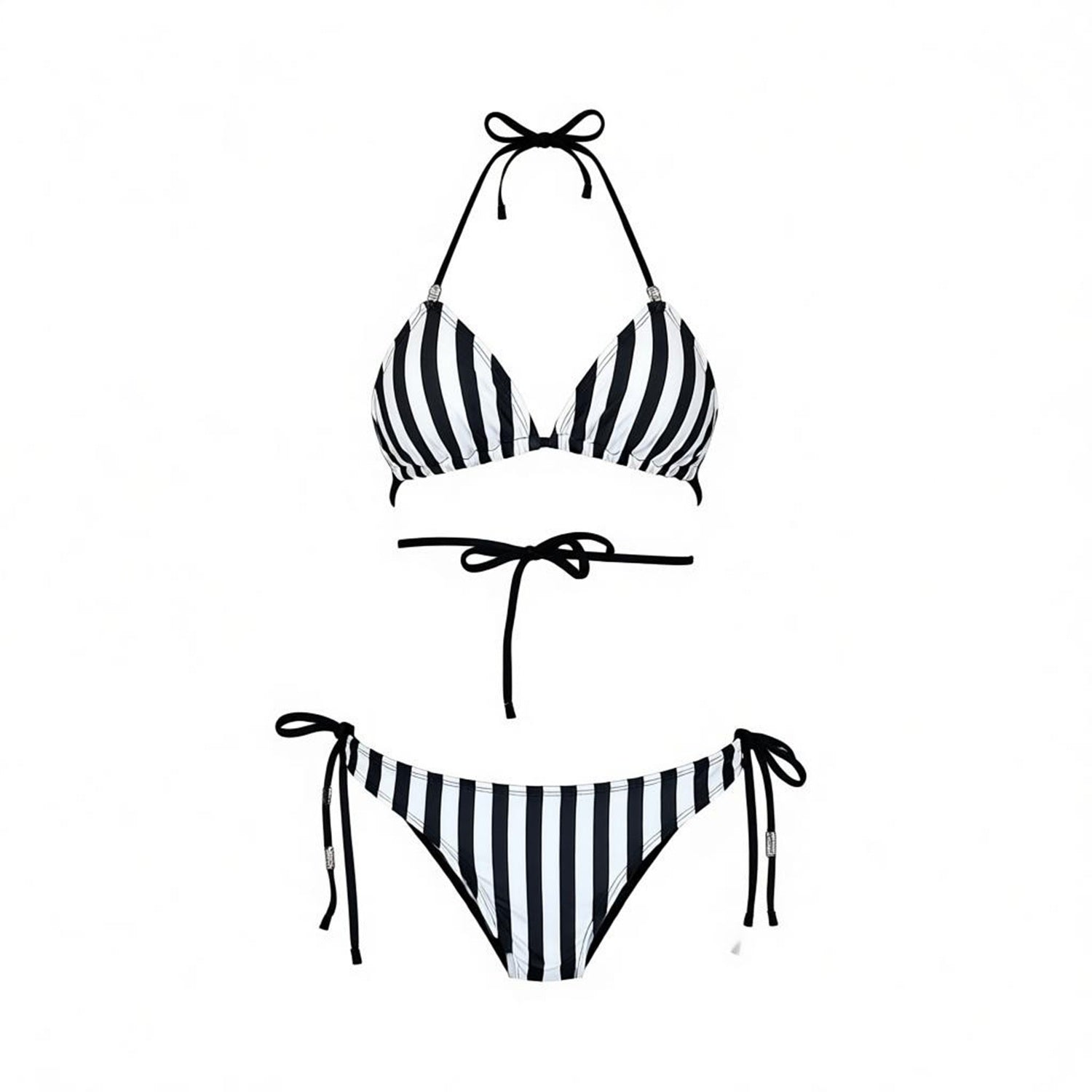 Natalie Tie Side Bikini BOTTOM - Black White Stripes